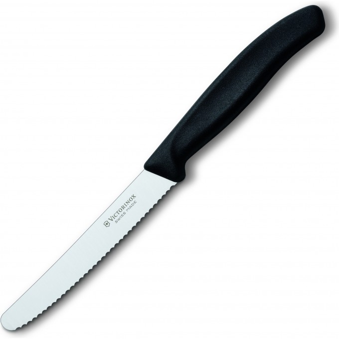 Острый и удобный кухонный нож с серрейторной заточкой для измельчения, очистки фруктов и овощей, а также нарезки помидоров и сосисок Victorinox.